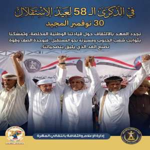 أبين تحتفل بالذكرى الـ58 للاستقلال الوطني في أجواء مفعمة بالفرح والولاء