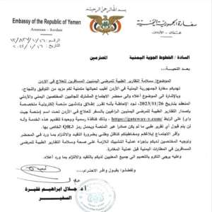 إعلان هام من السفارة اليمنية في الأردن (وثيقة)
