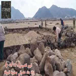 وحدة حماية الأراضي تنفذ الحماية الأمنية لإزالة بناء عشوائي بجانب مطار صلاح الدين بعدن