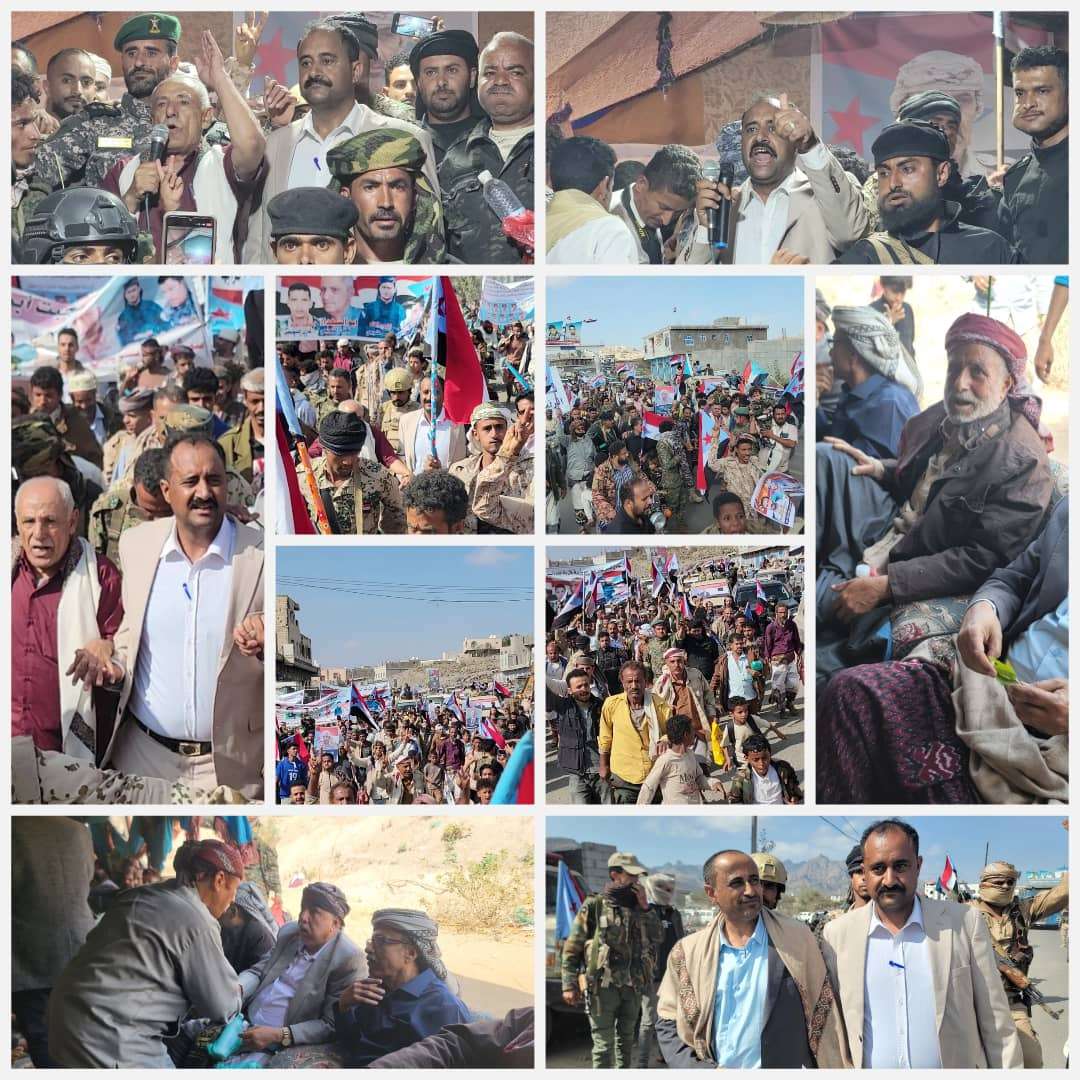 حيث تدفقت الجماهير الكبيرة الى ساحة المعتصمين بالمخيم المفتوح بمحافظة الضالع، من ابناء مدينة قعطبة ومنطقة مريس، ومنطقة العود، ومنطقة حجر، ومنطقة زبيد، وعلى رأسها العقيد زغلول علي محمد قايد القطاع الرابع حزام أمني، والعقيد نصر جعوال قائد كتيبة أمن مريس، والأستاذ عبدالباسط المرح مدير مكتب التربية والتعليم بقعطبة، والدكتور عبدالغني علي محمد مدير مكتب الصحة بمديرية قعطبة، والمناضل الكبير علي سعيد شعبان سكرتير اول منظمة الحزب الإشتراكي بمديرية مريس الحزبية، والعقيد عبدالله مثنى العماري، وحضور كبير من القيادات العسكرية والأمنية والشخصيات الاجتماعية والتربوية والاعلاميين، والاكاديمين، والصحيين.
