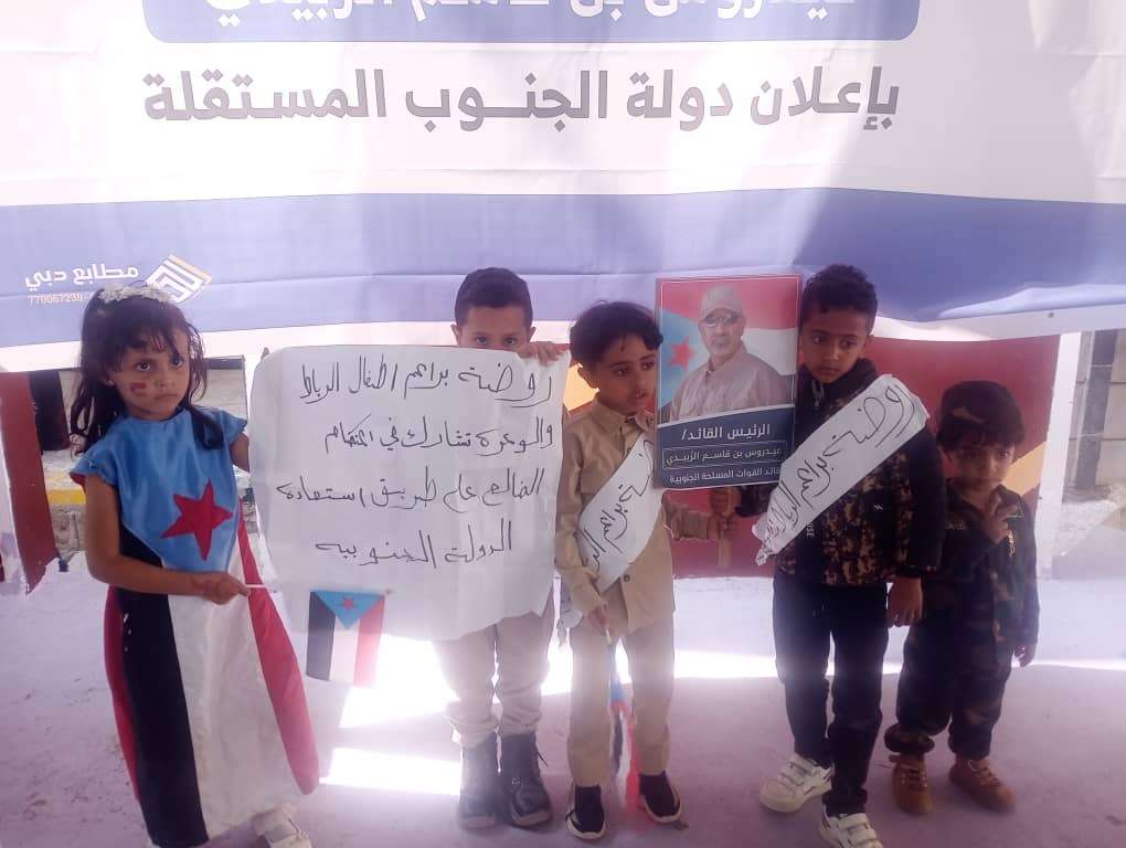 وفي زخم المشاركه وعنفوان المد الجماهيري لأبناء المديرية جسد اطفال روضة الوعرة والرباط اروع صور حب الوطن من خلال مشاركتهم فى هذه التظاهرة الوطنية فلم تكن مشاركتهم مشاركه عابرة بل كان لها صدى واسع في صفوف الحشود الجماهيرية في مخيم الاعتصام ارغمت الجميع لإطلاق عاصفة من التصفيق في مراسيم استقبال البراءة الذين أتوا متوشحين بأعلام الجنوب حاملين بين اكفهم الصغيرة لوحه ورقية كتب عليها روضة براعم الوعرة والرباط مديرية الضالع تشارك في مخيم الاعتصام المفتوح على طريق استعادة دولة الجنوب العربي أنها بصمة الطفولة في هذه التظاهرة الحاشدة التي جسدون فيها اروع صور حب الوطن