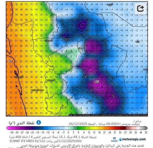 وأوضح الزربة أن انخفاض الرطوبة سيزداد يومي الخميس والجمعة، متزامنًا مع تراجع درجات الحرارة إلى مستويات قد تقترب من الصفر المئوي أو درجة واحدة فوقه في بعض المناطق، داعيًا المواطنين إلى تدبيل الأغطية وأخذ الاحتياطات اللازمة.