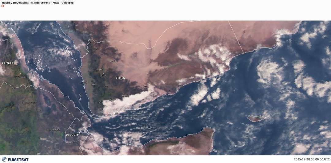 تشهد أرخبيل سقطرى والسواحل الشرقية والجنوبية، إلى جانب المرتفعات الجبلية المقابلة لها، سحبًا ركامية منخفضة وكثيفة، مع احتمال هطول أمطار خفيفة خلال الساعات القادمة.