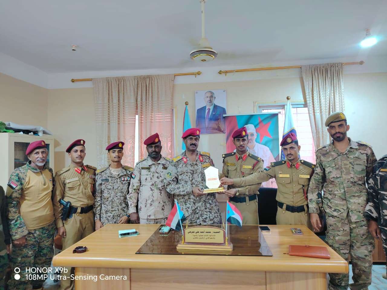 وفي السياق ذاته، قام الضباط الخريجون خلال اللقاء بتكريم قائد اللواء الثالث حماية رئاسية العميد محمد أحمد الفعرهي بدرع شكر وعرفان، تقديرًا لدعمه المستمر للخريجين من أبناء سقطرى.
