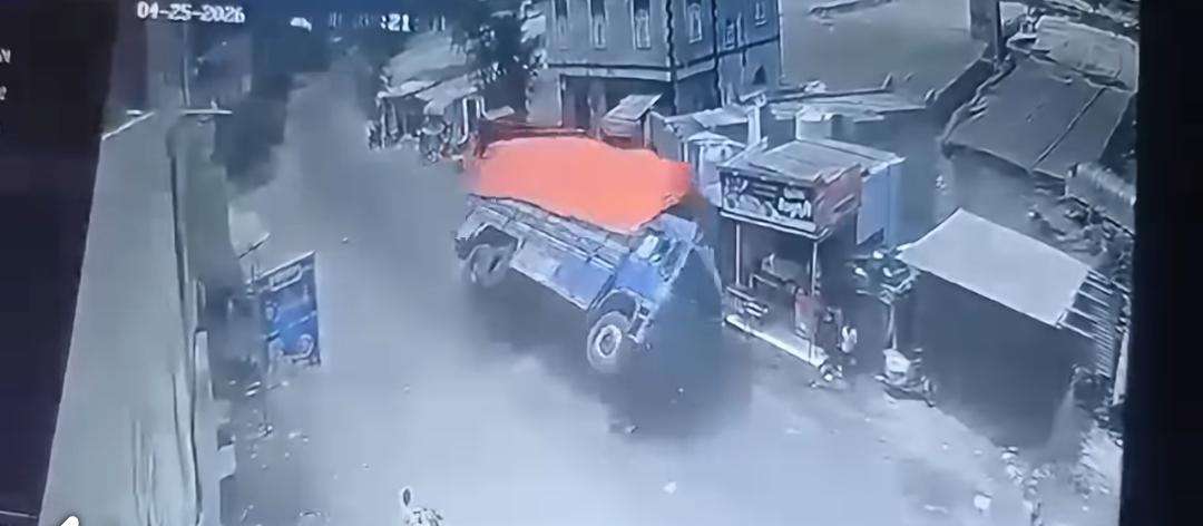 انقلاب شاحنة في مريس بسبب الحمولة الزائدة وسط مطالبات بضبط النقل الثقيل