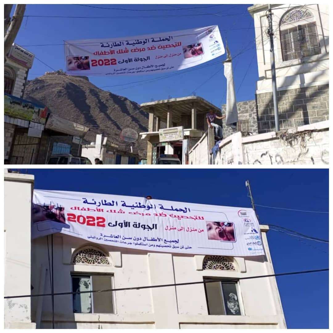 تتواصل في مديرية يافع رصد بمحافظة أبين لليوم الثاني على التوالي الحملة التثقيفية والإعلامية المرافقة للحملة الوطنية الطارئة للتحصين ضد شلل الأطفال الجولة الأولى 2022م لتوعية المواطنين بأهمية تطعيم الأطفال دون سن العاشرة لوقايتهم من الإصابة بفيروس شلل الأطفال، وعدم تصديق الشائعات التي يروجها البعض ضد حملة  التطعيم ضد مرض شلل الأطفال.