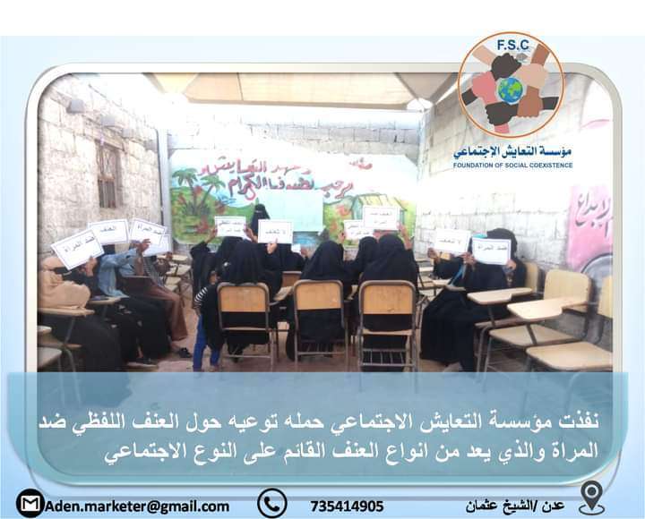 مؤسسة التعايش الاجتماعي تنفد جلسات توعوية حول اضرار العنف ضد المرأة بالشيخ عثمان