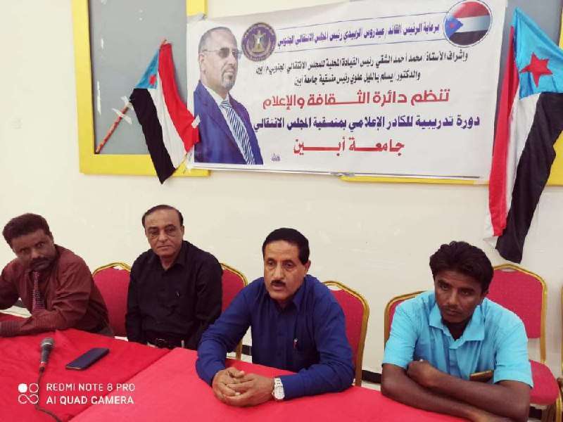 وفي الدورة التي تقام برعاية رئيس المجلس الانتقالي اللواء عيدروس الزبيدي وإشراف قيادتي انتقالي ابين ومنسقية الجامعة ونظمتها إدارة الثقافة والإعلام بمنسقية الجامعة القى الأستاذ محمد الشقي كلمة رحب فيها بالمشاركين من منتسبي الإعلام ومؤكدا على أهمية الإعلام في رفع مستوى الوعي الثقافي والمجتمعي ومشيدا بما بذلوه من جهود للوصول والمشاركة لتلقي المعارف العلمية والتطبيقية في الإعلام وتطوير الأداء والمهارات الاعلامية