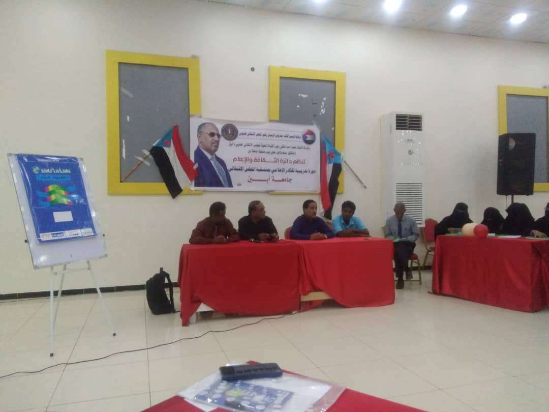 أقامت دائرة الثقافة والإعلام بــمنسقية المجلس الانتقالي آلج ـنوبــي بجامعة أبين دورة تدريبية للكادر الإعلامي بمنسقية المجلس بالجامعة