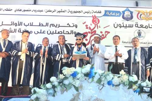 نظمت جامعة سيئون اليوم احتفالية بهيجة بتخرج 520 طالب وطالبة الدفعة الثالثة من طلابها وطالبتها من حملة شهادات الدبلوم والبكالوريوس والماجستير وتكريم الطلاب الأوائل منهم والحاصلين على مرتبة الشرف للعام الجامعي 2020م / 2021م ، برعاية كريمة من فخامة رئيس الجمهورية المشيرالركن / عبدربه منصور هادي.
