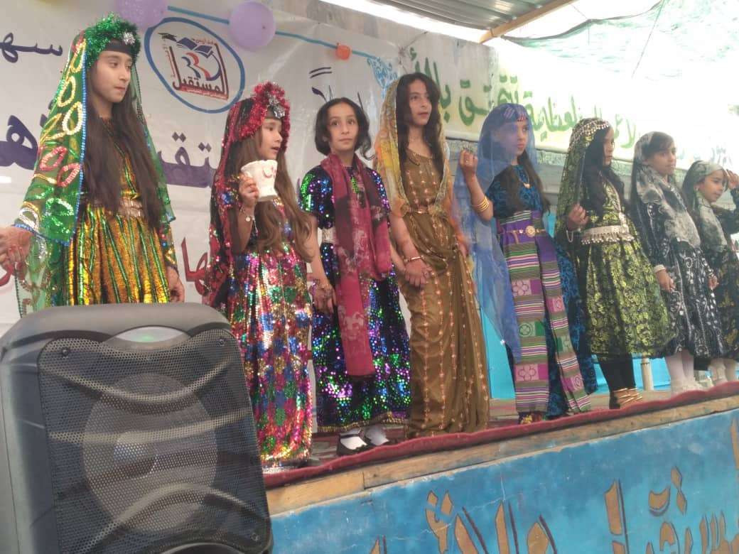 ثم النشيد الوطني الجنوبي وفقرة فنية تعبر عادات الاعراس في يافع والوان من الازياء الشعبية القديمة تقديم زهرات المستقبل
