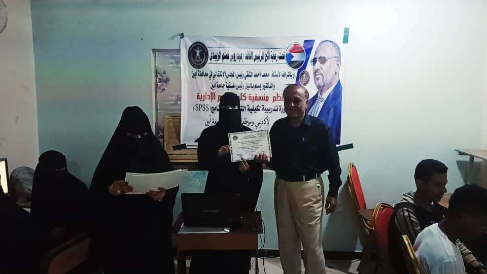 اختتام الدورة التدريبية في البرنامج الاحصائي SPSS لاكاديميي وموظفي وطلاب جامعة أبين
