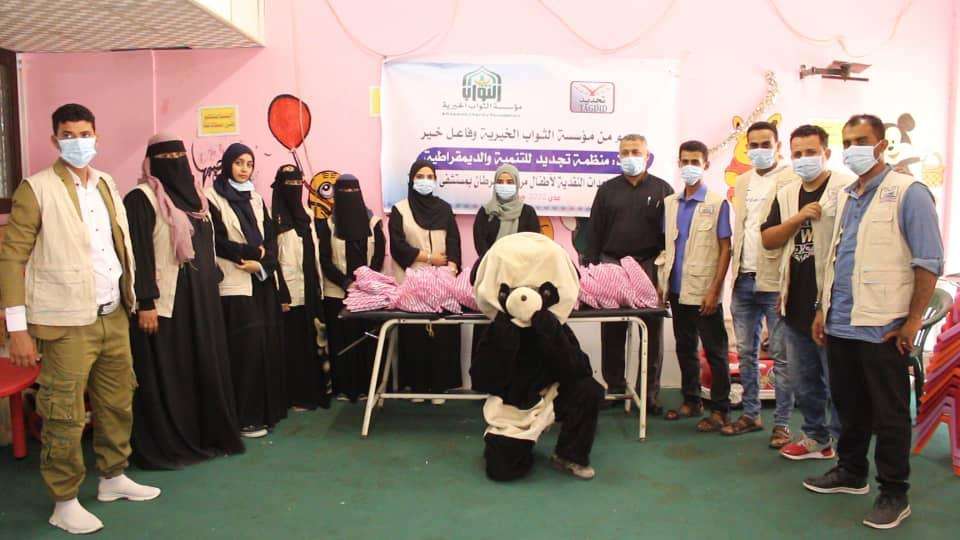 قامت منظمة تجديد للتنمية والديمقراطية بتنفيذ مشروع المساعدات النقدية لاطفال مرضى السرطان بمستشفى الصداقة عدن