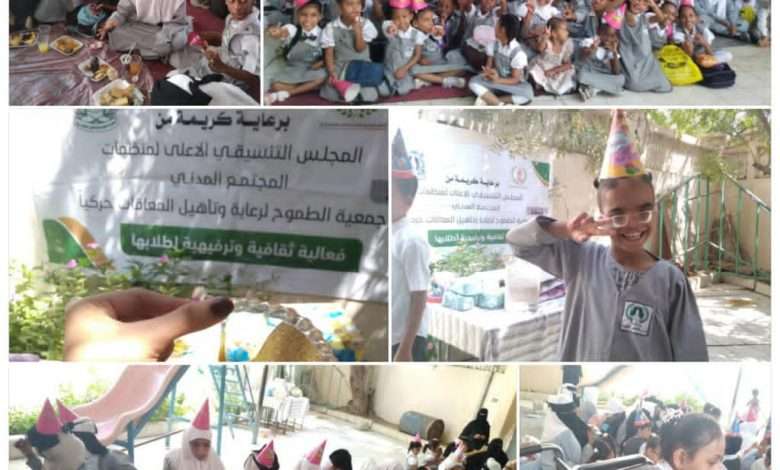 نفذت جمعية الطموح لرعاية وتأهيل المعاقات حركياً صباح يوم امس الخميس فعالية ثقافية ترفيهية تحت رعاية المجلس التنسيقي الأعلى لمنظمات المجتمع المدني واستهدفت الفعالية طلاب مدرسة الطموح التابعة لجمعية الطموح لرعاية وتأهيل المعاقات حركياً.