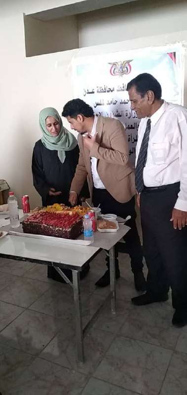 تكريم موظفات مكتب وزارة الشؤون الاجتماعية والعمل في العاصمة عدن وذلك بمناسبة اليوم العالمي للمرأة العاملة، حيث قام الأستاذ أرسلان السقاف القائم بأعمال المدير العام لمكتب وزارة الشؤون الاجتماعية والعمل في العاصمة عدن بتكريم الموظفات العاملات في مكتب الوزارة بعدن وذلك تقديراً لجهودهم المثمرة في إنجاح عمل المكتب
