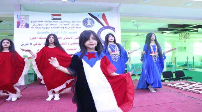 نظمت إدارة المرأة والطفل بالهيئة التنفيذية للقيادة المحلية للمجلس الانتقالي الجنوبي في محافظة المهرة، اليوم الثلاثاء، حفلاً فنياً وخطابياً احتفاءً بـ"اليوم العالمي للمرأة" برعاية كريمة من الرئيس القائد عيدروس قاسم الزُبيدي رئيس المجلس الانتقالي الجنوبي.