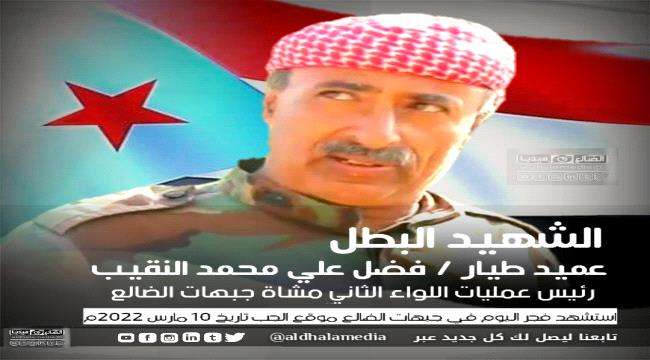 واكد اللواء شلال إن الرحيل المُبكر للشهيد العميد طيار فضل علي محمد النقيب يشكل خسارة فادحة للجنوب عامة خصوصاً وهو من الكوادر الجنوبية المؤهلة في جيش دولة الجنوب ومن قيادات الثورة الجنوبية الذي كان يتحلى بصفات الشجاعة والإخلاص في مواقفه الوطنية الثابتة خلال مسيرة حياته النضاليه حتى إستشهاده فجر اليوم الخميس .