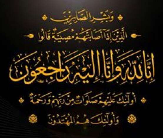 قال تعالى: (وَبَشِّرِ الصَّابِرِينَ الَّذِينَ إِذَا أَصَابَتْهُمْ مُصِيبَةٌ قَالُوا إِنَّا لِلَّهِ وَإِنَّا إِلَيْهِ رَاجِعُونَ) .. صدق الله العلي العظيم.