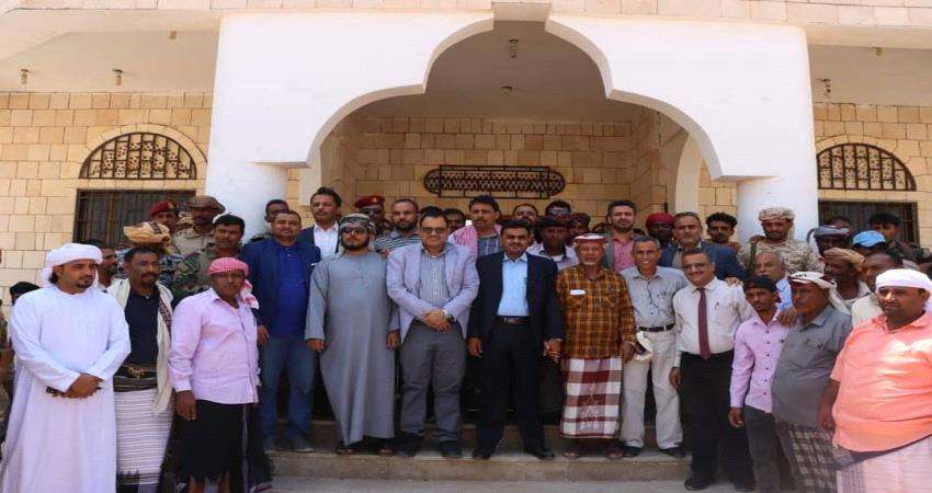 وبحضور وكيلي المحافظة العميد ركن صالح علي سعد السقطري والمهندس رائد الجريبي ومدير فرع الهيئة العامة للمصائد السمكية "أحمد علي عثمان" ومدير عام مكتب الزراعة والري في المحافظة "يحي سعيد بن ماجد"، مديرية قلنسية وعبد الكوري.