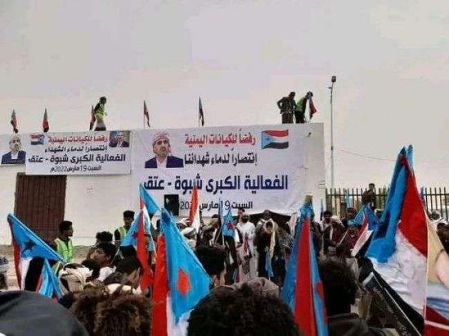دعت تظاهرة رفض الكيانات اليمنية، المقامة في مديرية عتق بمحافظة شبوة، اليوم السبت، الدول الراعية لاتفاق الرياض إلى الضغط على ما تسمى الشرعية لتطبيق بنوده، والقبول بانتشار النخبة بشكل كامل في المحافظة.