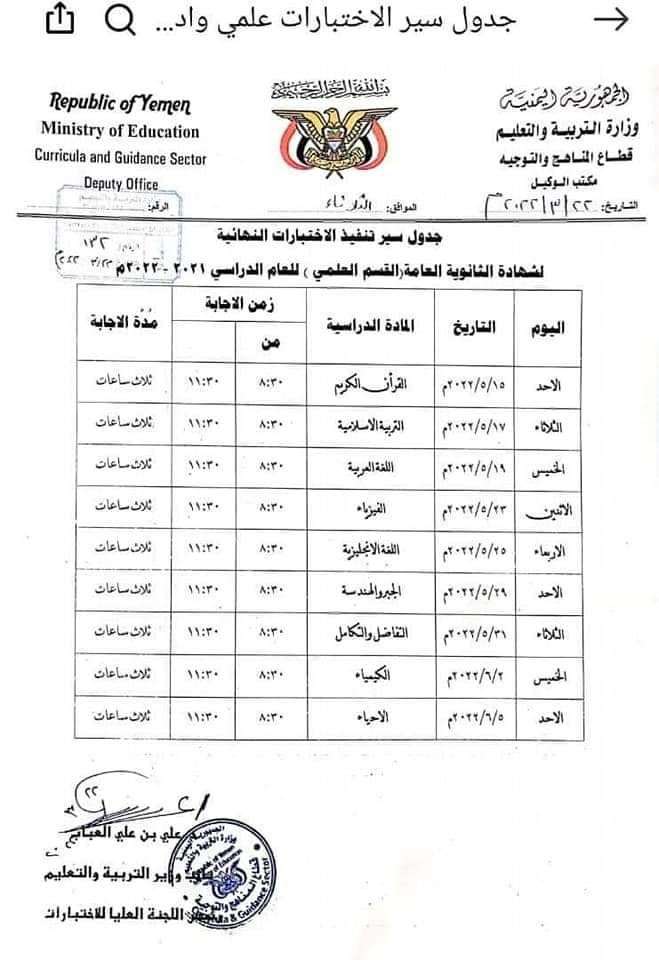 قامت وزارة التربية والتعليم بنشر جداول اختبارات الثانوية العامة للعام الحالي 2021 -2022 للقسمين العلمي والأدبي.