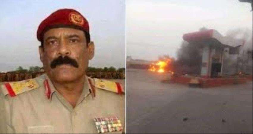 عناصر إرهابية قامت بوضع سيارة مفخخة بجانب محطة اليمداء بخط المدينة الخضراء بمديرية تبن لحج قبل مرور موكب اللواء الركن ثابت مثنى جواس بساعات.