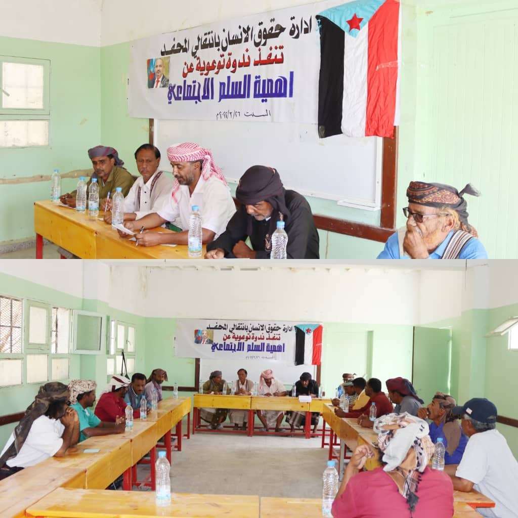 حقوقية الإنسان بانتقالي المحفد تٌنظّم ندوة توعوية عن أهمية السلم الإجتماعي بالمديرية