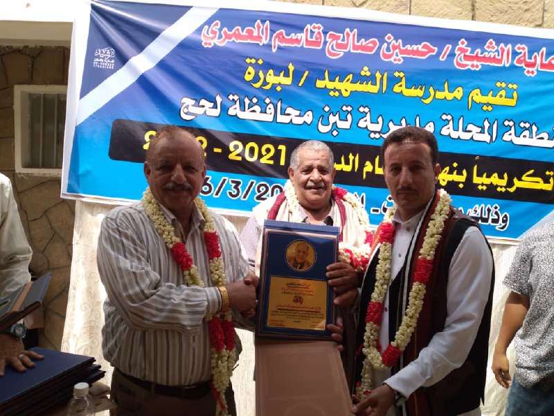 دشن صباح اليوم السبت اللواء الركن/ صالح أحمد حسين السيد البكري وكيل أول محافظة لحج بمعية الشيخ/ حسين صالح قاسم المعمري الحفل التكريمي الاحتفائي الفرائحي البهيج الذي أقامته مدرسة الشهيد لبوزة في منطقة المحلة بمديرية تبن محافظة لحج و أثناء ذلك الحفل التكريمي الذي سادته روح الحيوية و النشاط و الفرحة العامرة في القلوب و الذي أقامته مدرسة الشهيد لبورة بالمحلة بمناسبة اانتهاء العام الدراسي 2022/2021 م