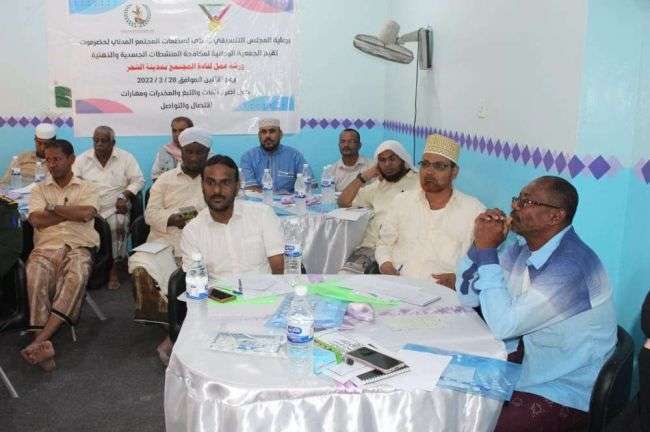 برعاية المجلس التنسيقي الأعلى لمنظمات المجتمع المدني بمحافظة حضرموت أقامت الجمعية الوطنية لمكافحة المنشطات الجسدية والذهنية ورشة عمل لقادة المجتمع المدني بمديرية الشحر حول أضرار القات والتبغ والمخدرات ومهارات الاتصال والتواصل .