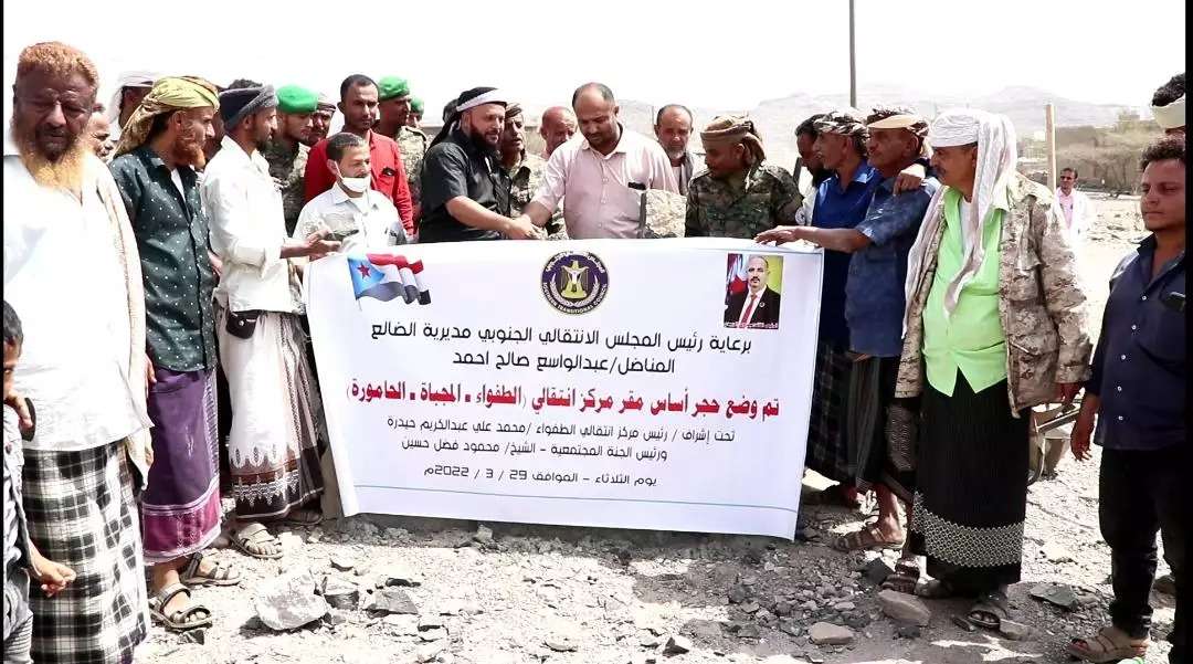 رئيس انتقالي مديرية الضالع يضع حجر أساس لبناء مقر لانتقالي مركز الطفواء