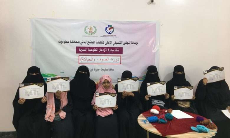اختتمت مبادرة الازدهار التطوعية النسوية و برعاية كريمة من المجلس التنسيقي الأعلى لمنظمات المجتمع المدني . بمحافظة حضرموت دورة حياكة الصوف بمديرية غيل باوزير .