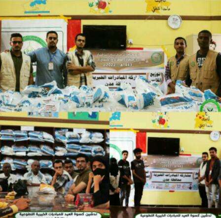 ثم تم توزيع لكل مبادرة الحصة المخصصة لها من ملابس كسوة العيد ليتم توزيعها حسب الخطط المقدمة من قبلهم في أنحاء مديريات العاصمة عدن، كما تم اعتماد لكل مبادرة 100 وجبة افطار وإشباع صائم خلال يومين من أيام الشهر الكريم.