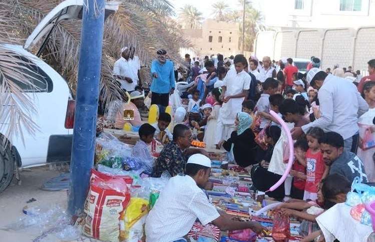 فيما يقام بعد صلاة العصر بجانب المسجد الذي يختم القراءان فيه سوق شعبي فيه من الالعاب والشكولاتة والحلويات من خلال الباعة المتجولين والتي تسمى ( بساط ) ، غالبية زبائنه من الاطفال ذكور وإناث يأتون بهم آبائهم او اخوانهم الشباب بعد أن يلبسوهم أجمل الثياب و أزهاها وهم منتظرين هذه الليلة في شوق ترى على وجوهم الفرحة وهم يتنقلون بين الباعة المفرشين على الارض يعرضون بضائعهم للأطفال وليس مقتصرا على اطفال البيوت المجاورة