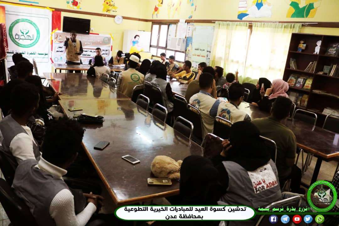 مؤسسة الهجرة تدشن توزيع كسوة العيد وإفطار واشباع صائم لـ 12 مبادرة خيرية تطوعية بـالعاصمة عدن