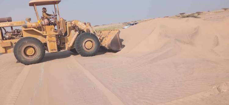 الفرق الفنية تواصل إزاحة الرمال بخورعميرة في محافظة لحج