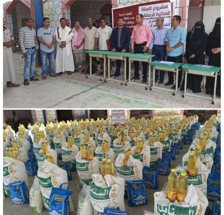 مدير عام البريقة يدشن توزيع (280) سلة غذائية لعمال النظافة والمكفوفين بالمديرية