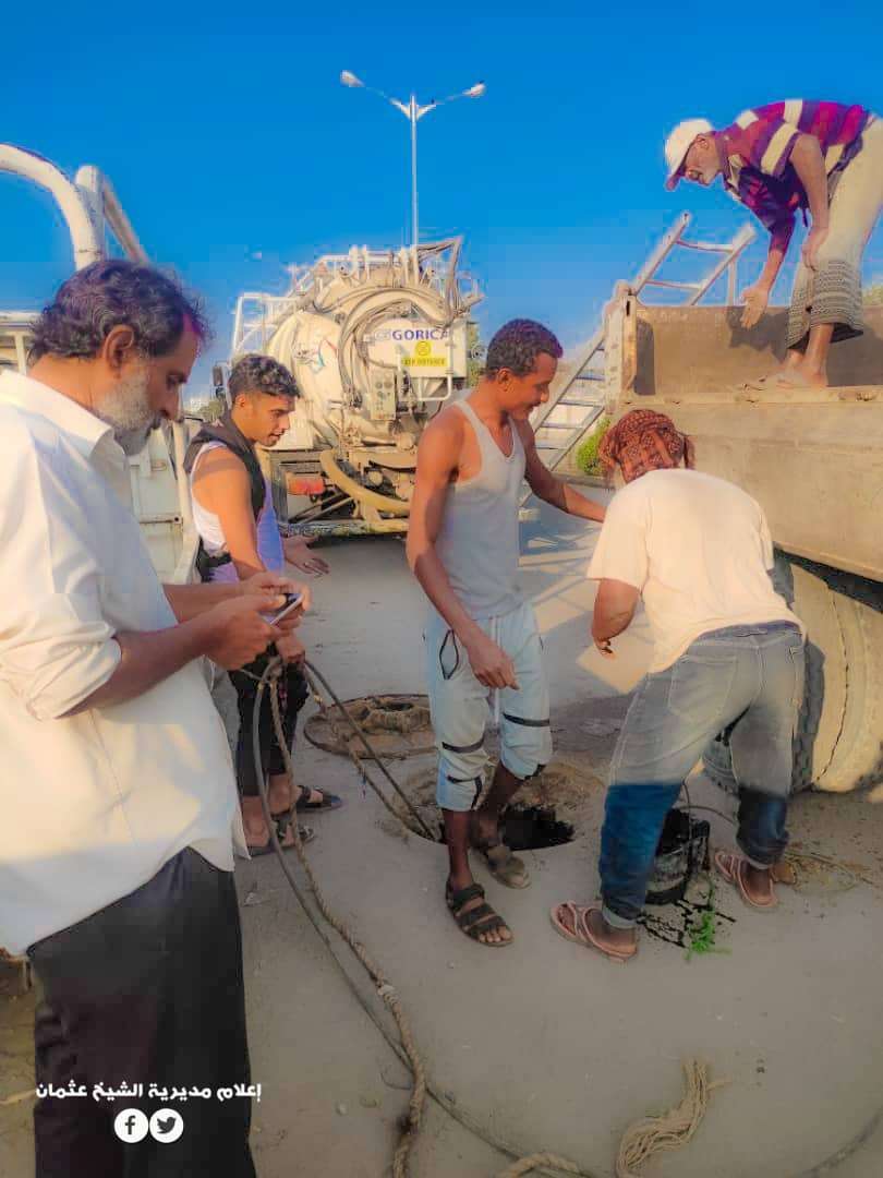 بتوجيهات مدير عام الشيخ عثمان الدكتور وسام معاوية سعيد، رئيس المجلس المحلي، دشن مدير قسم الصرف الصحي في مديرية الشيخ عثمان الاخ سامح علي محمد، حملة صيانة وتصفية خطوط شبكة الصرف الصحي الرئيسية من( خط الضخ من مثلث الممدارة وحتى المضخة الرئيسة بالحجاز).
