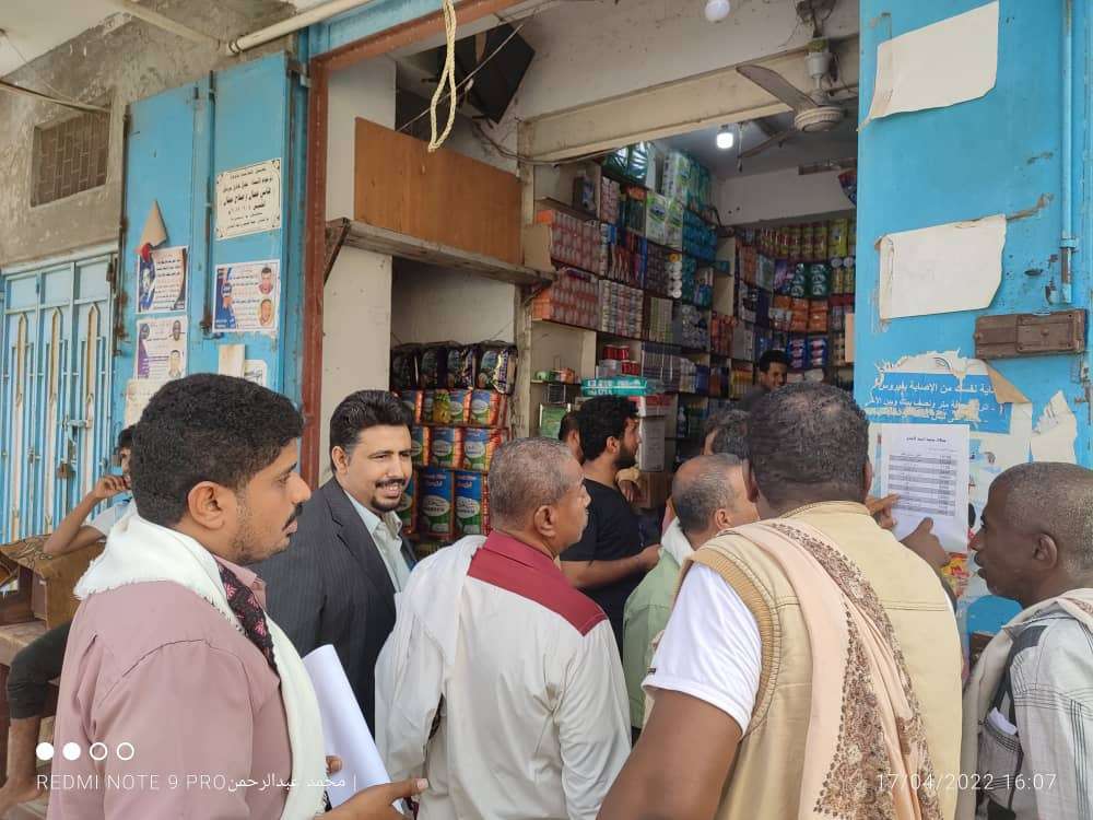 وخلال النزول اطلع مدير عام مكتب الصناعة والتجارة بالمحافظة ومدير عام مديرية زنجبار على اسعار بيع السلع الغذائية في محلات الجملة ومقارنتها مع الاسعار السابقة قبل ارتفاع قيمة الصرف للريال في مواجهة العملات الأجنبية والتأكد من رفع قائمة بالاسعار امام كل محل بالاسعار الجديدة للسلع تفعيلاً لمبدأ المنافسة بين التجار كم تم تحرير ثمان مخالفات لعدم وجود قائمة بالاسعار امام المحلات .