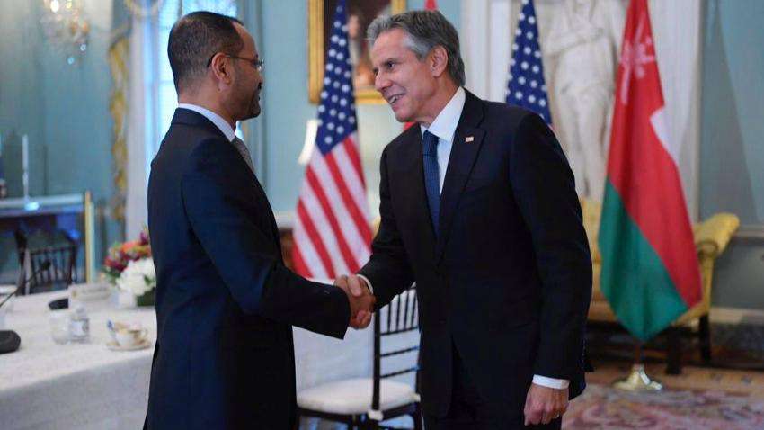 وقالت وزارة الخارجية العمانية، في بيان لها، إن "وزير الخارجية الأمريكي أنتوني بلينكن، استقبل نظيره العماني بدر البوسعيدي، في واشنطن، وجددا اتفاقهما على عدم وجود حل عسكري للصراع في اليمن؛ وشددا على دعمهما لوحدة أراضي اليمن وسيادته واستقلاله".
