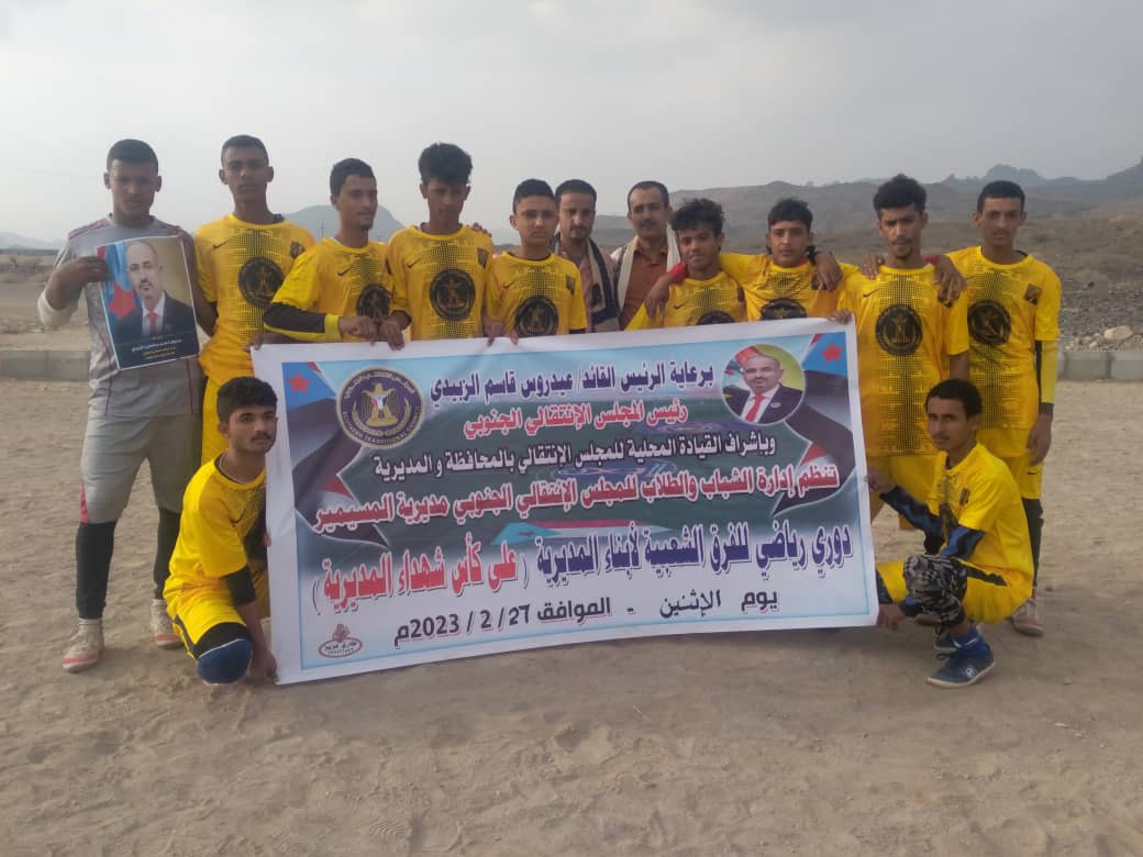 أنطلقت عصر اليوم الإثنين 27-2-2023، على ملعب الفقيد شرف ردفان الصوملي بمنطقة حبيل سويداء بالمسيمير محافظة لحج مباريات دوري شهداء الحواشب للفرق الشعبية برعاية إدارة الشباب والطلاب بالمجلس الانتقالي الجنوبي بالمديرية.