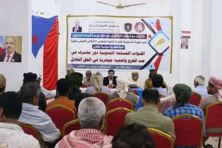 بحضور"بن عفرار" انتقالي المهرة ينظم ندوة فكرية سياسية حول الدور المشرف للقوات المسلحة الجنوبية في صد الغزو و أهميته في الحل العادل للقضية الجنوبية