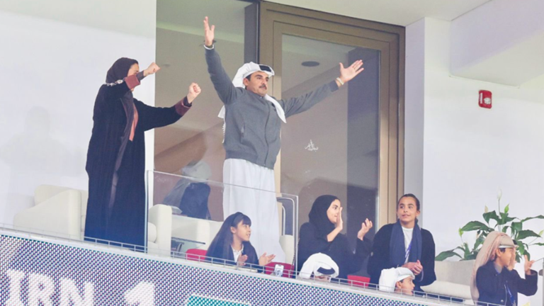 احتفال أمير قطر بفوز منتخب بلاده على إيران وبلوغه نهائي كأس آسيا