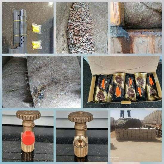 وامتنعت عن السماح بدخول كمية من محابس أسطوانات الغاز المنزلي (صمامات) مجهولة البيانات، كما صادرت 2881 كرتونا من منتج كيك مغطى بالشوكولاتة بسبب تغير الخواص الحسية المميزة للمنتج، بالإضافة إلى 500 كيس من منتج فول سوداني لوجود أعفان.