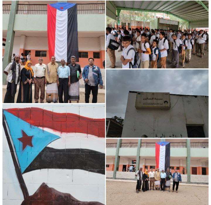 تدشين رفع العلم الجنوبي بمدرسة البساتين في مديرية دارسعد