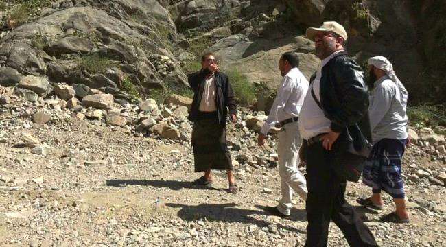 عضو مجلس إدارة المشروع، بالنزل الى مقطع طريق الركب في حطاط بيافع.