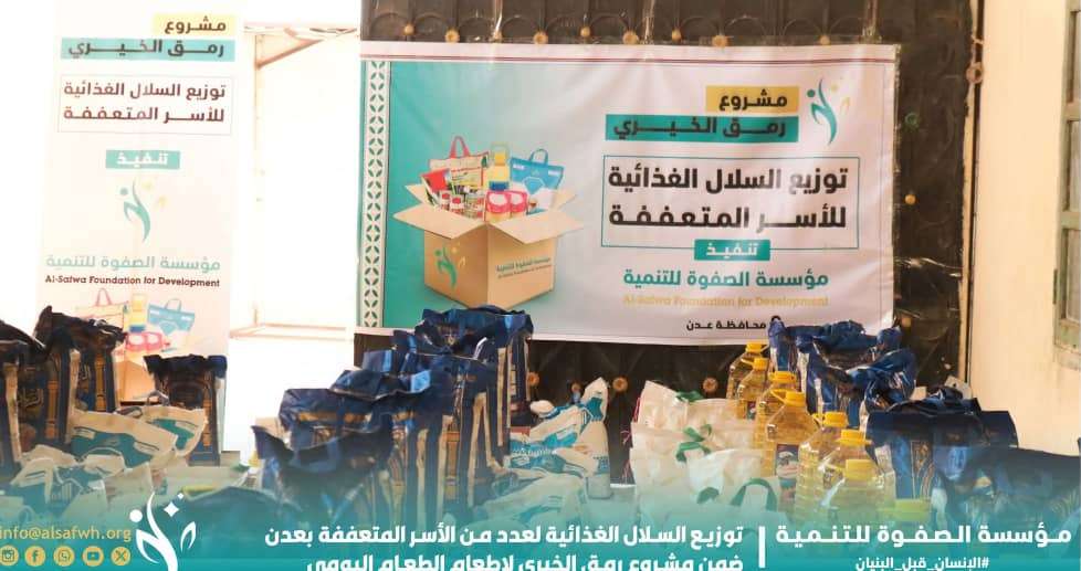مؤسسة الصفوة توزّع سلل غذائية للأسر المتعففة بعدن