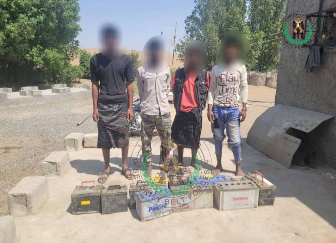 وأضاف المصدر أن قوات الحزام الأمني بقطاع الحسيني تمكنت، مساء أمس، من إلقاء القبض على أفراد العصابة متلبسين أثناء قيامهم بسرقة عدة بطاريات من إحدى الشاحنات.