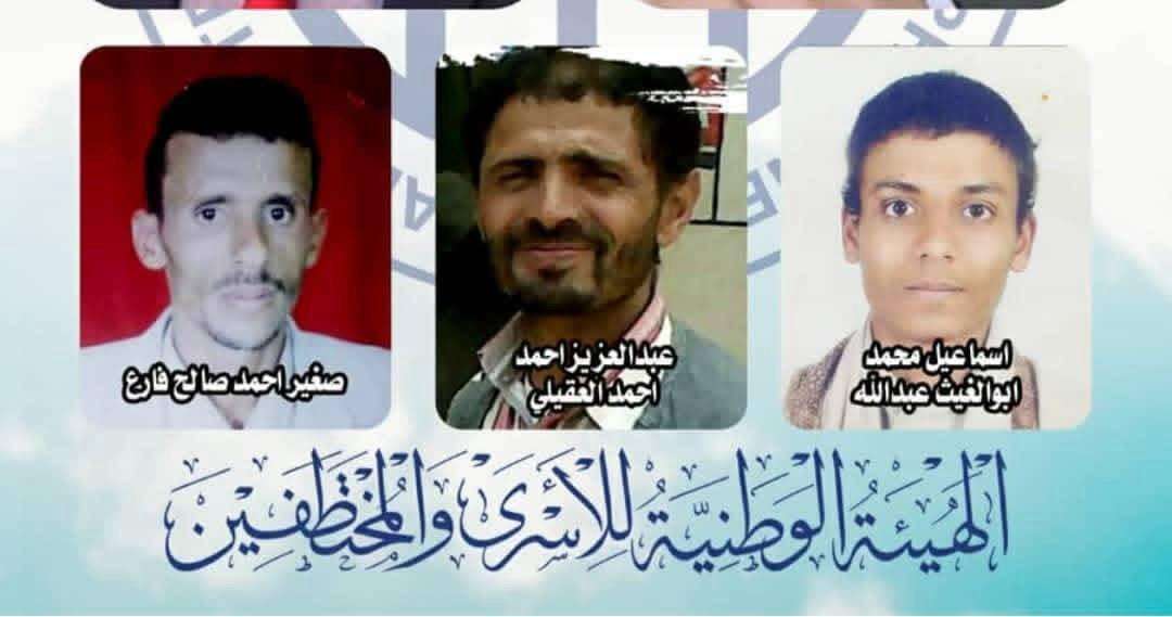 ادانت الهيئة الوطنية للأسرى والمختطفين بأشد العبارات، اليوم، مصادقة ما أسمتها "المحكمة العليا الحوثية" في صنعاء على قرارات إعدام جائرة بحق ثلاثة مختطفين هم: إسماعيل أبو الغيث، وصغير فارع، وعبدالعزيز العقيلي، ووصفتها بأنها "جريمة قانونية مكتملة الأركان".