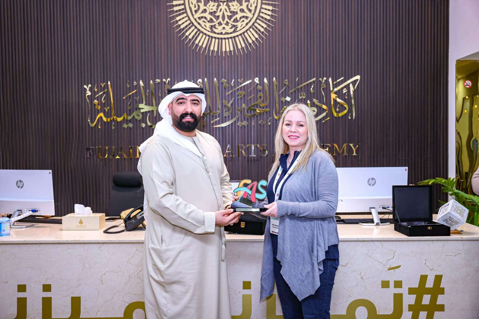 كرمت اكادمية الفجيرة للفنون الفنانة التشكيلية مها البارودي نظير ابداعاتها في الفنون التشكيلية على مستوى الوطن العربي وعلى جهودها المبذولة في انجاح ملتقى الفنون الثاني بالفجيرة الذي يشارك فيه ما يزيد عن 90 فنان تشكيلي من اكثر من 20 دولة.