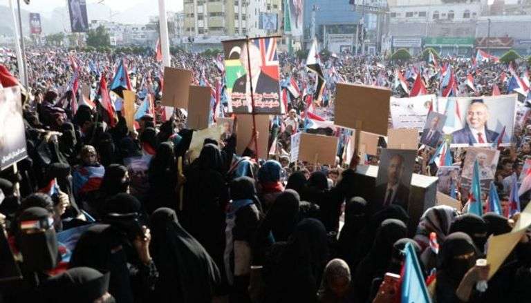 واحتشد مئات الآلاف في عدن، السبت، تحت شعار «مليونية الوفاء والصمود»، فيما اعتبره نشطاء ومراقبون بمثابة استفتاء شعبي تلقائي على شرعية المجلس الانتقالي الجنوبي، وتفويض لقيادته في مواجهة لحظة دقيقة.